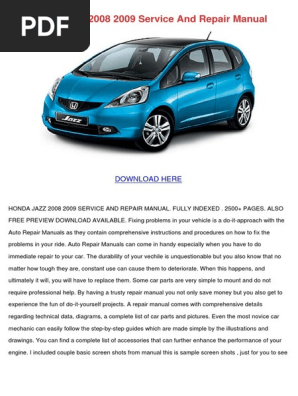 Honda Jazz 2008 2009 Service And Repair Manual Pdf Car Axle